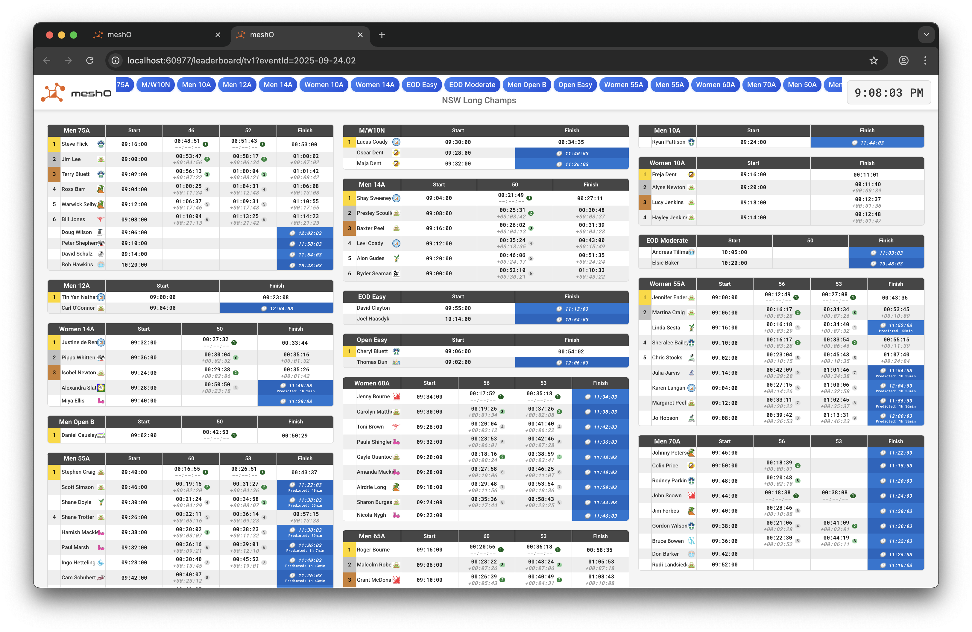meshO radio send information in real time enabling live commentary and continuously updated result screens. Coming is GPS live athlete tracking independent of mobile coverage.